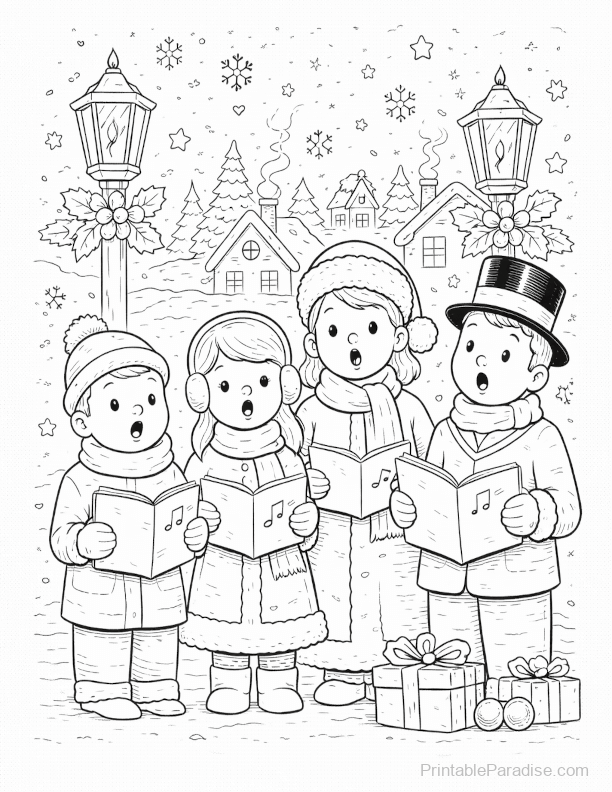 Printable Christmas Carolers Coloring Page