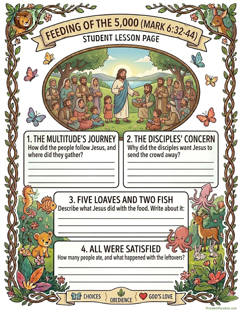 Printable Jesus Feeding the 5000 Lesson Worksheet