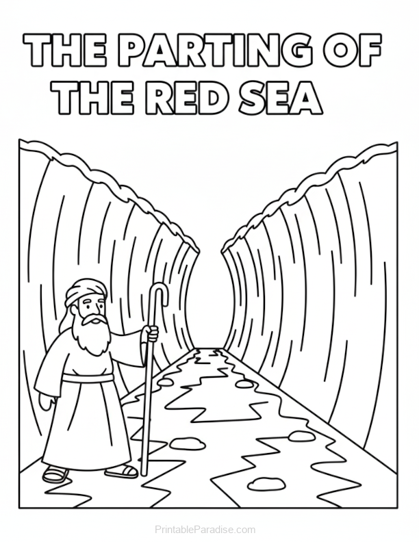 Printable Parting of the Red Sea Coloring Page