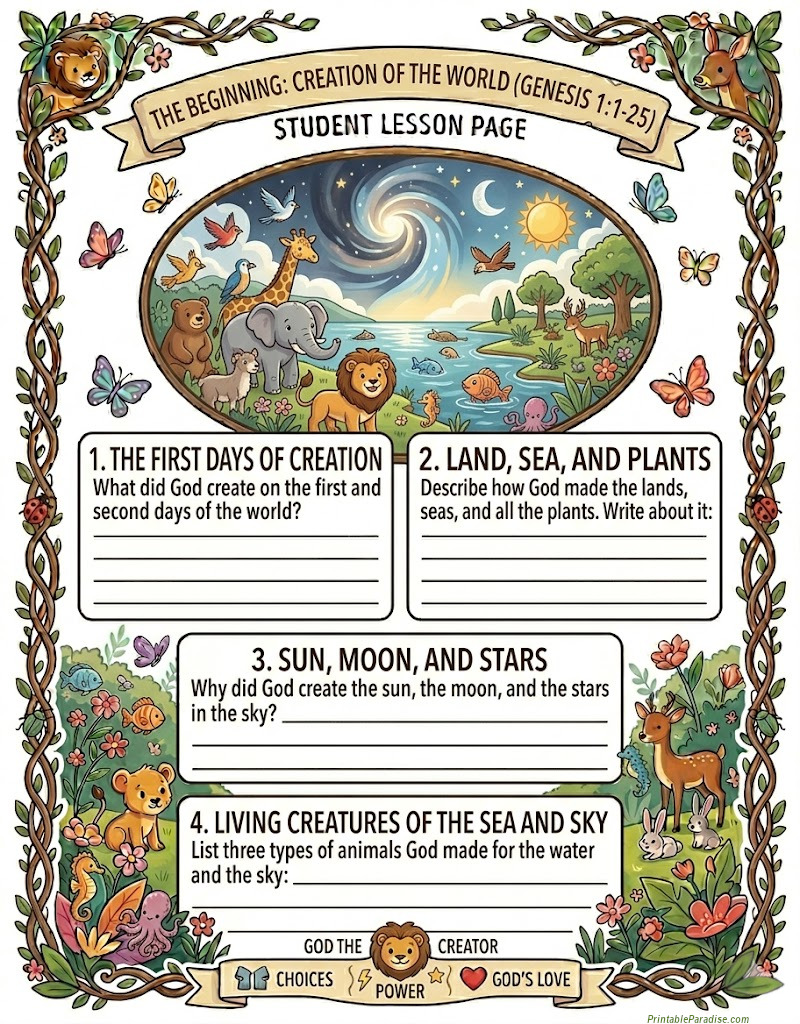Printable The Creation Lesson Worksheet