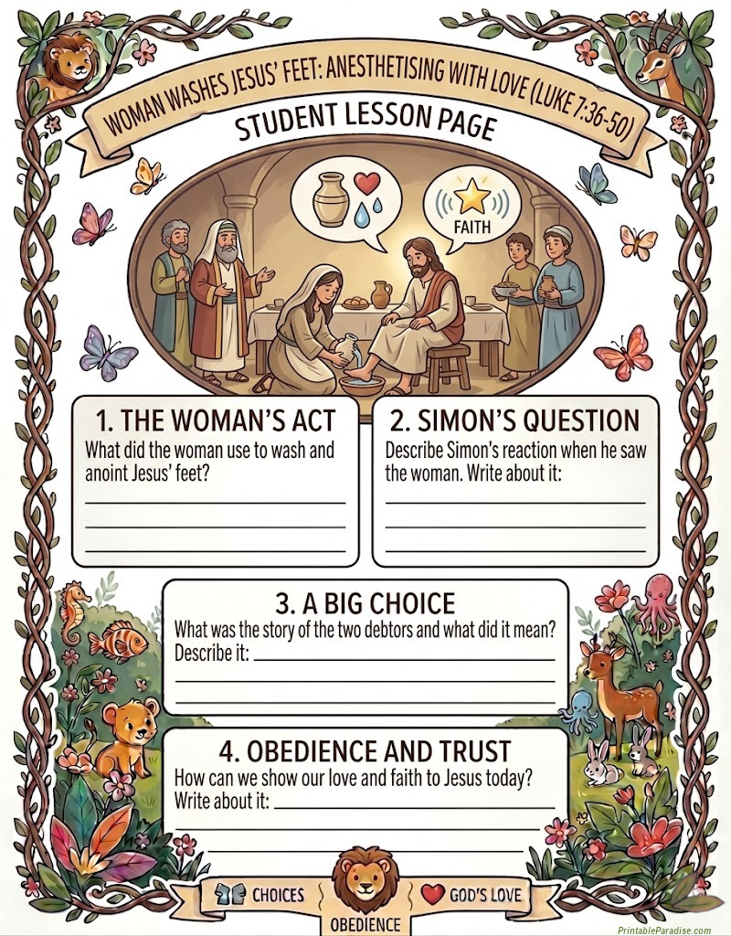Printable Woman Washers Jesus Feet Lesson Worksheet